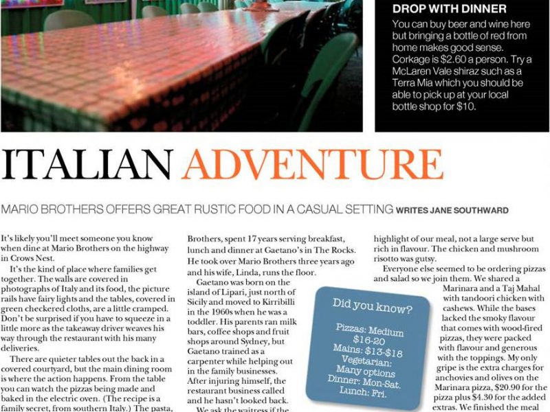 Everyday is Mothers Day at Mario Brothers, treat your mum now ! (Sorry we are closed Mothers Day as we are every Sunday.)