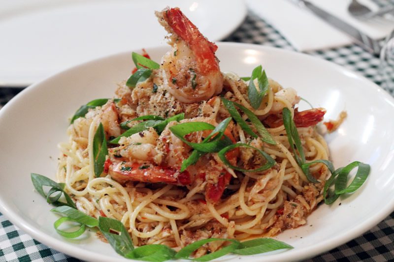 Crab meat, prawns, chilli, garlic & olive oil